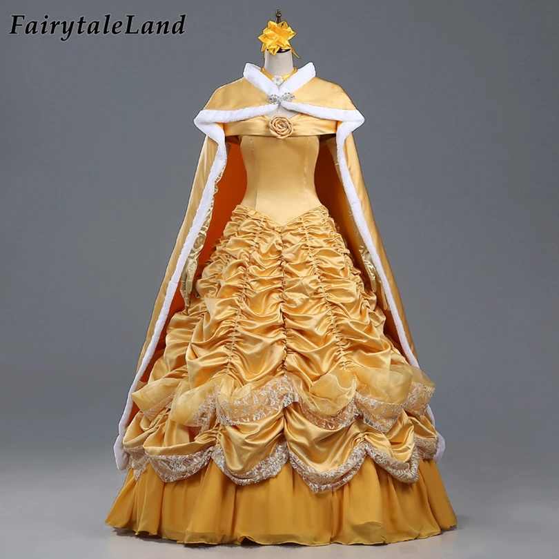 Amazon Com Fortunehouse Belle Golden Ball Gown Women S Princess Fancy Dress Adult Cosplay Costume Xs Clothing Shoes Jewelry