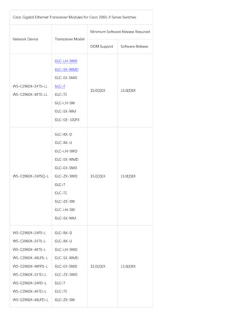 Cisco 2960x Datasheet And Supported Sfp Modules